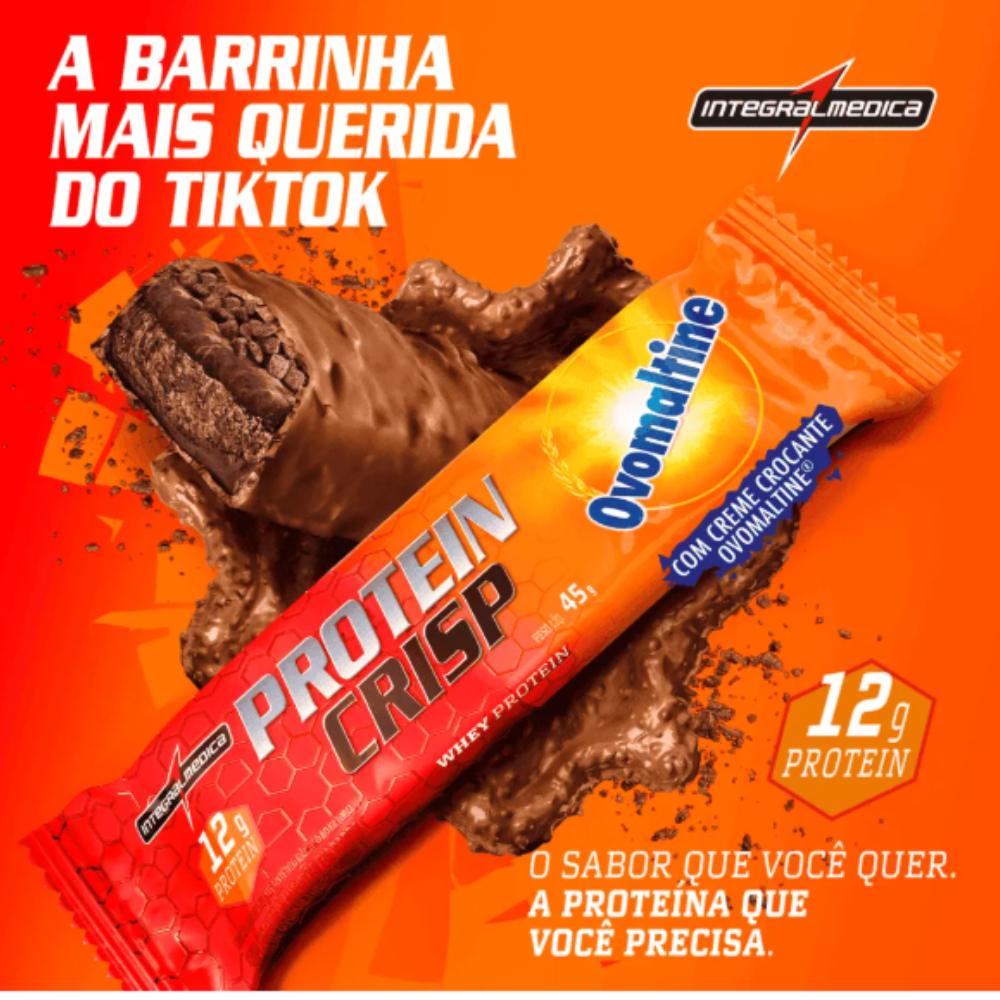 A Protein Crisp sabor Ovomaltine® é a mais nova barra de proteína da Integralmedica, desenvolvida para quem busca aliar nutrição, praticidade e muito sabor em um só produto. Combinando a alta qualidade de proteínas de Protein Crisp com o sabor e a crocância inconfundíveis de Ovomaltine®, ela é perfeita para complementar a dieta com mais prazer e eficiência.